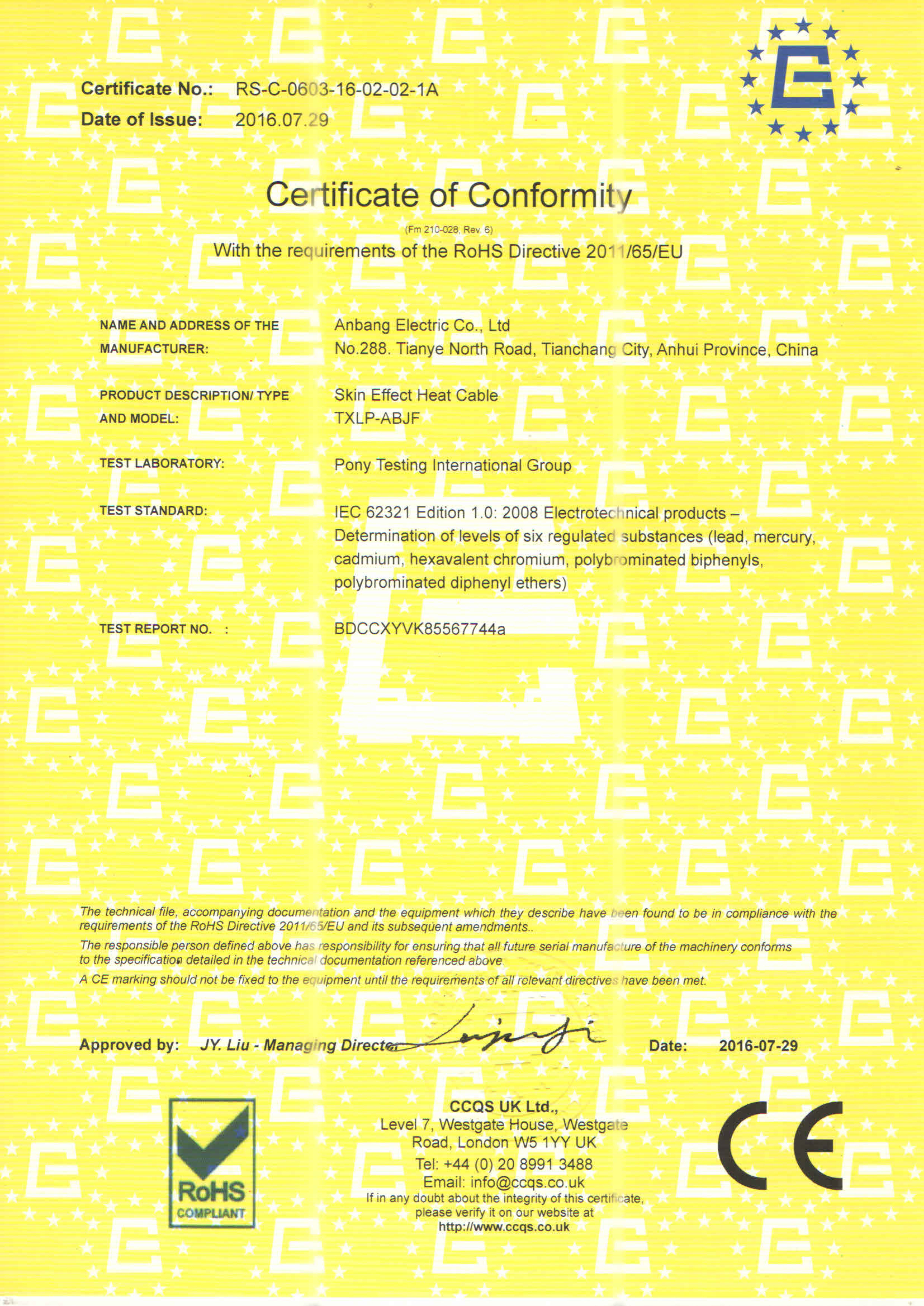 安邦電氣股份有限公司,總部位于北京市長安街,成立于2004年,注冊資金10088萬。安徽生產基地占地面積63000平方米,擁有66套各類生產線,其中進口生產線6套。國家高新技術型企業(yè),滁州市市長質量獎企業(yè),專精特新“小巨人”企業(yè),擁有國家知識產權局授權的45項專利,其中發(fā)明專利28項 , 主筆《太陽能熱利用自限溫電熱帶安裝規(guī)范》行業(yè)標準,參編《自限溫電伴熱帶》國家標準、《工業(yè)和商業(yè)用電阻式伴熱系統》國家標準、《太陽能熱利用自限溫電熱帶》行業(yè)標準、《爆炸性環(huán)境 電阻式伴熱器》國家標準等7項國家標準。企業(yè)通過UL認證,國家強制性 CCC產品認證,ISO9001質量管理體系認證,ISO14001環(huán)境管理體系認證,ISO45001職業(yè)健康安全管理體系認證,Q/SHS0001.1健康、安全與環(huán)境管理體系認證,歐盟防爆ATEX認證,歐盟CE認證,RoHS認證,俄羅斯海關聯盟認證,國家防爆電氣CCC證書。產品系列:集膚伴熱系統、電伴熱系統、電加熱器、電地暖系統、集儀器儀表、電線電纜、高低壓配電柜(箱)、電纜橋架、閥門管件等等設計、制造、銷售。產品應用于航天航空、軍工、石油、石化、天然氣、機場、化工、鋼鐵、隧道、消防、養(yǎng)殖、融雪化冰、室內供暖、國家電網及眾多電廠等等國家重點工程。出口美國、英國、德國、俄羅斯、韓國、日本、哈薩克斯坦、烏克蘭、伊朗等眾多國家。